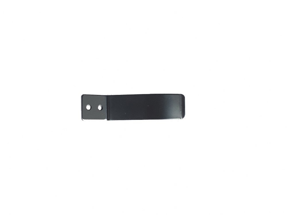 Het grote voordeel: veerkrachtig staal dat snel terugveert en rammels beperkt. Op de foto zie je een matzwarte, gebogen rem met twee bevestigingsgaten en meegeleverde inbusbouten en borgmoeren.