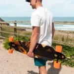 - Trucks: 7-inch aluminium drop-through trucks improve cruising and carving through a lower centre of gravity.