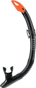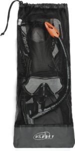 Partez à l'aventure avec le set de tuba Osprey noir/orange - idéal pour les adultes et les adolescents qui veulent voir clair et plonger confortablement.