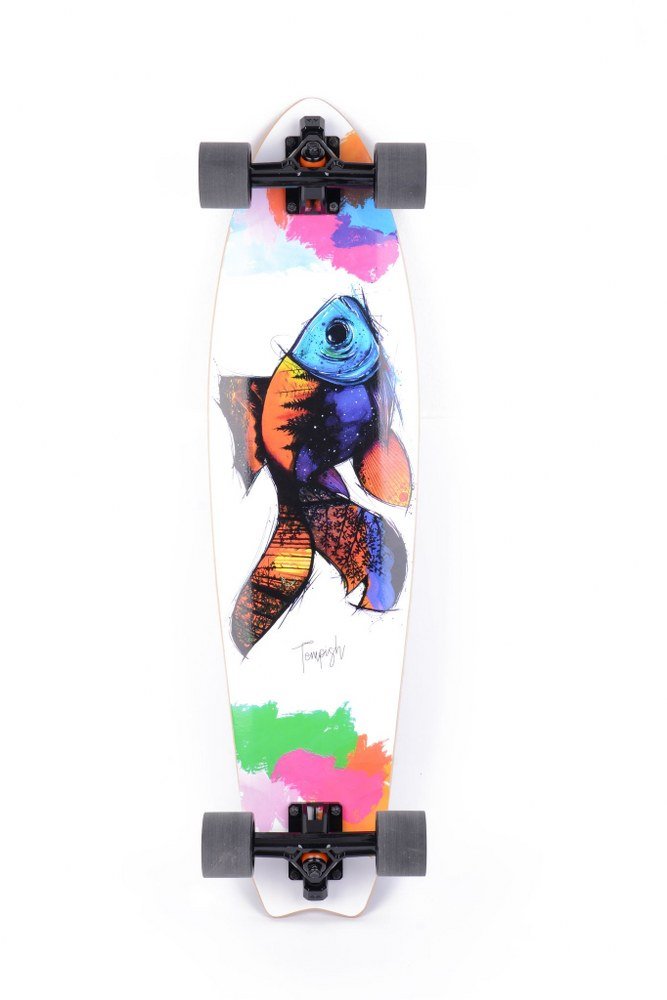 De Tempish longboard in zwart met multicolor visprint is een compacte cruiser van 82 cm (32,5 inch). Deze Tempish longboard is bedoeld voor unisex rijders die soepel door de stad willen rollen en korte bochten prettig vinden.