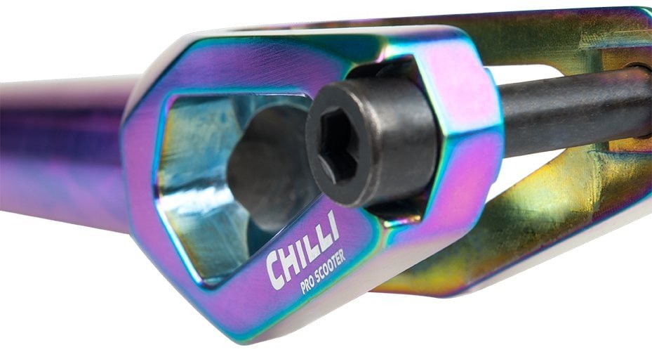 De Chilli Fork SCS in multicolor is een stevige SCS-voorvork voor freestyle steppen. Deze Chilli Fork SCS is bedoeld voor unisex rijders die precieze stuurcontrole en een duurzame constructie willen.
